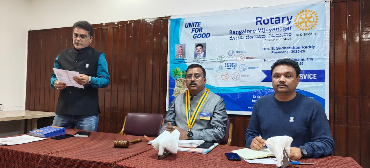 On 17th December, 2025, Rotary Bangalore Vijayanagar had its third Club Assembly where the new President Elect and the Board of Directors for the next year were announched. New team formed for the year 2026-27 are: President - Rtn Anil Kumar, President Elect - Rtn. Vivekananda K M, Vice President - Rtn. Prabhushankar N, Secretary - Rtn. Ravishankar N Murthy, Joint Secretary - Rtn. Ganesh Holla, Treasurer - Rtn. Sudhir Krishnamurthy, Director - Club Services - Rtn. Purushotham Gururaj, Directo...