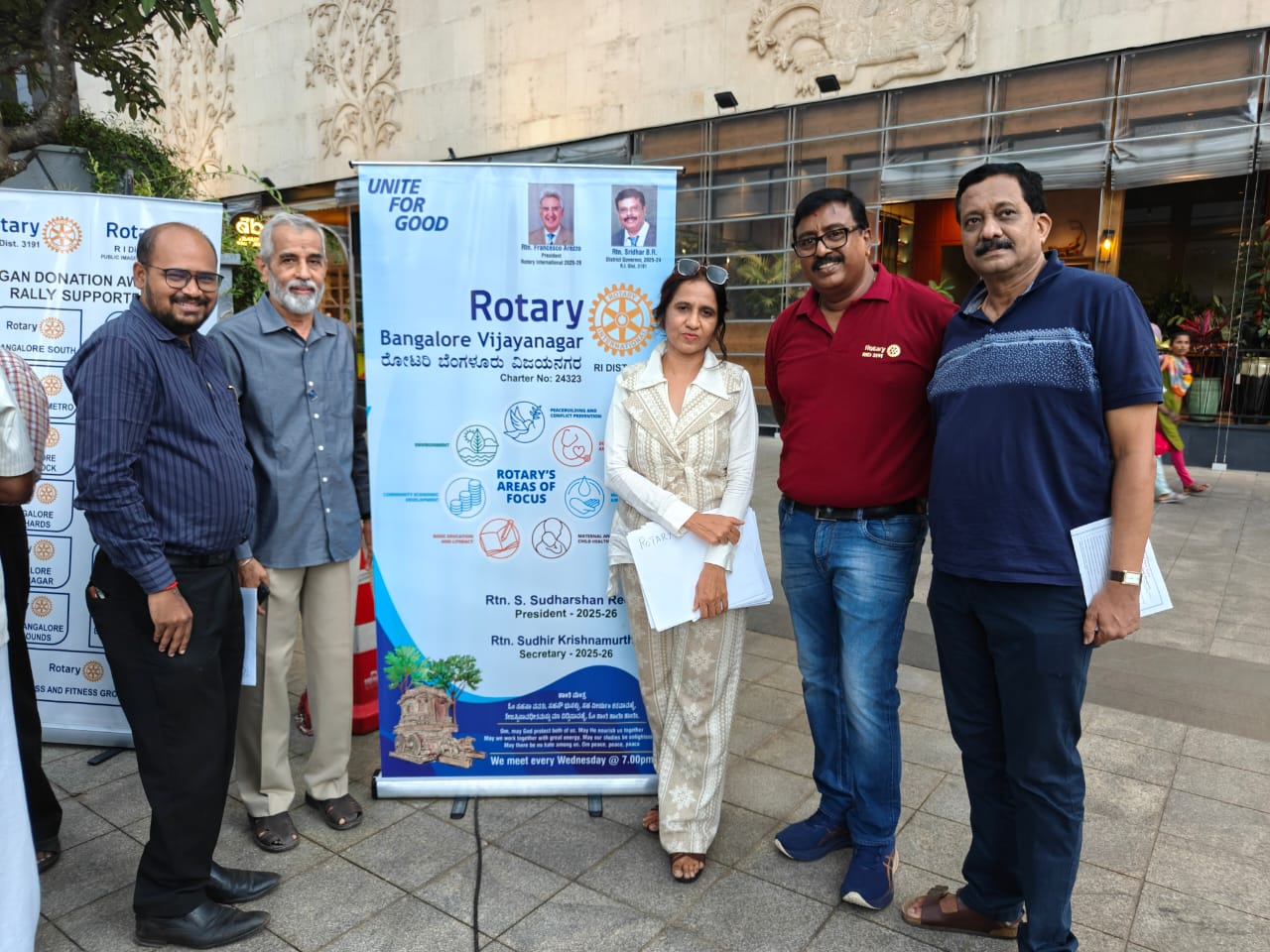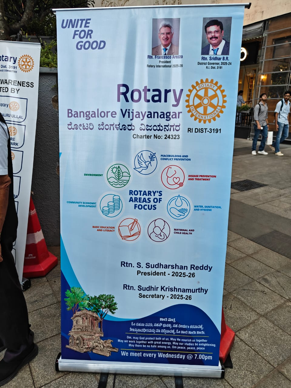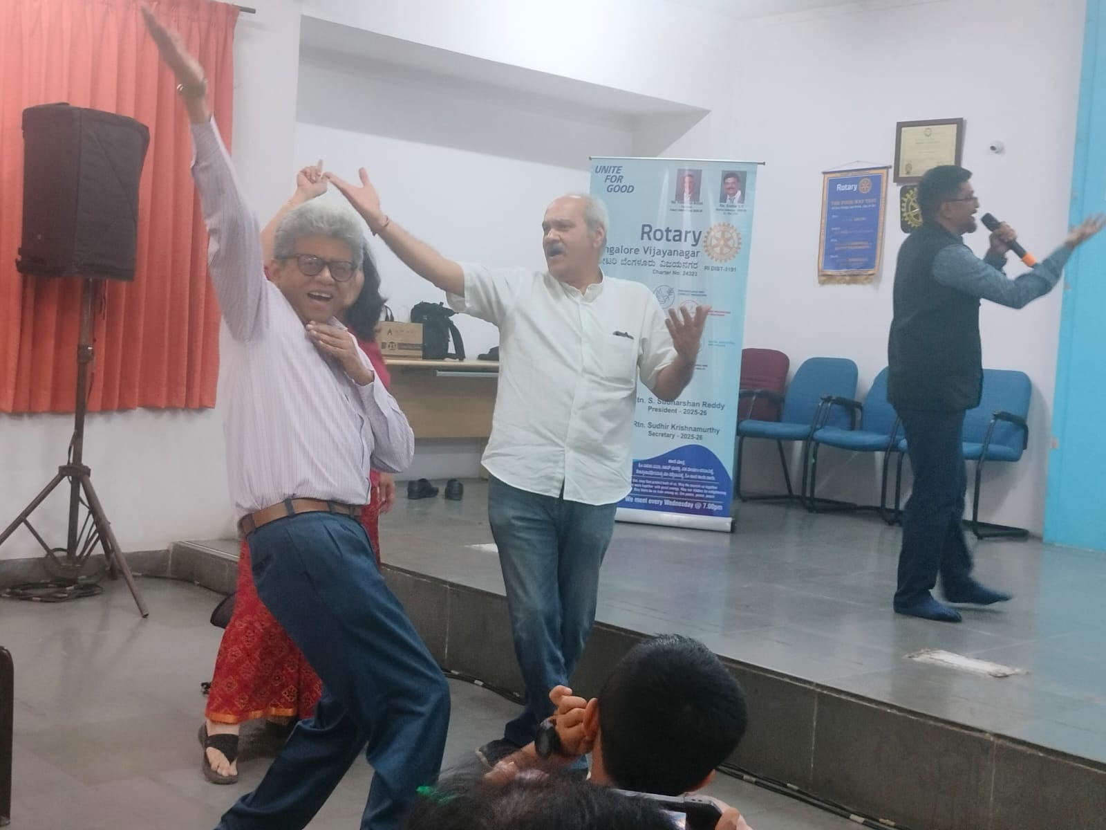 On 16th August, 2025, Rotary Bangalore Vijayanagar partnered with Rotary Bangalore Kanakapura Road on organising a wellness programme, where a portion of the proceeds would be donated to Visually Challenged Girls Music School. The programme started with a soulful Bharatanatyam dance performance, followed by various health sessions such as about talk on Brain Strokes by Dr. Sharath from Manipal hospital, sessions on Mental Health, Yoga, Pranic healing, followed by music performance by Visually Impaired, concluded with Sound therapy by Kumari and Kanuska. President Rtn. Sudarshan Reddy, President elect Rtn. Anil Kumar, YSD Rtn. Vishwakumar and Rtn. Rakesh attended the programme.