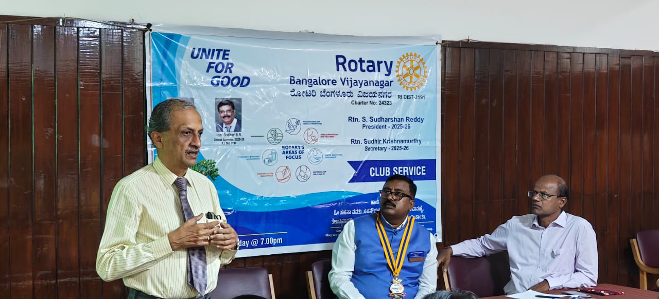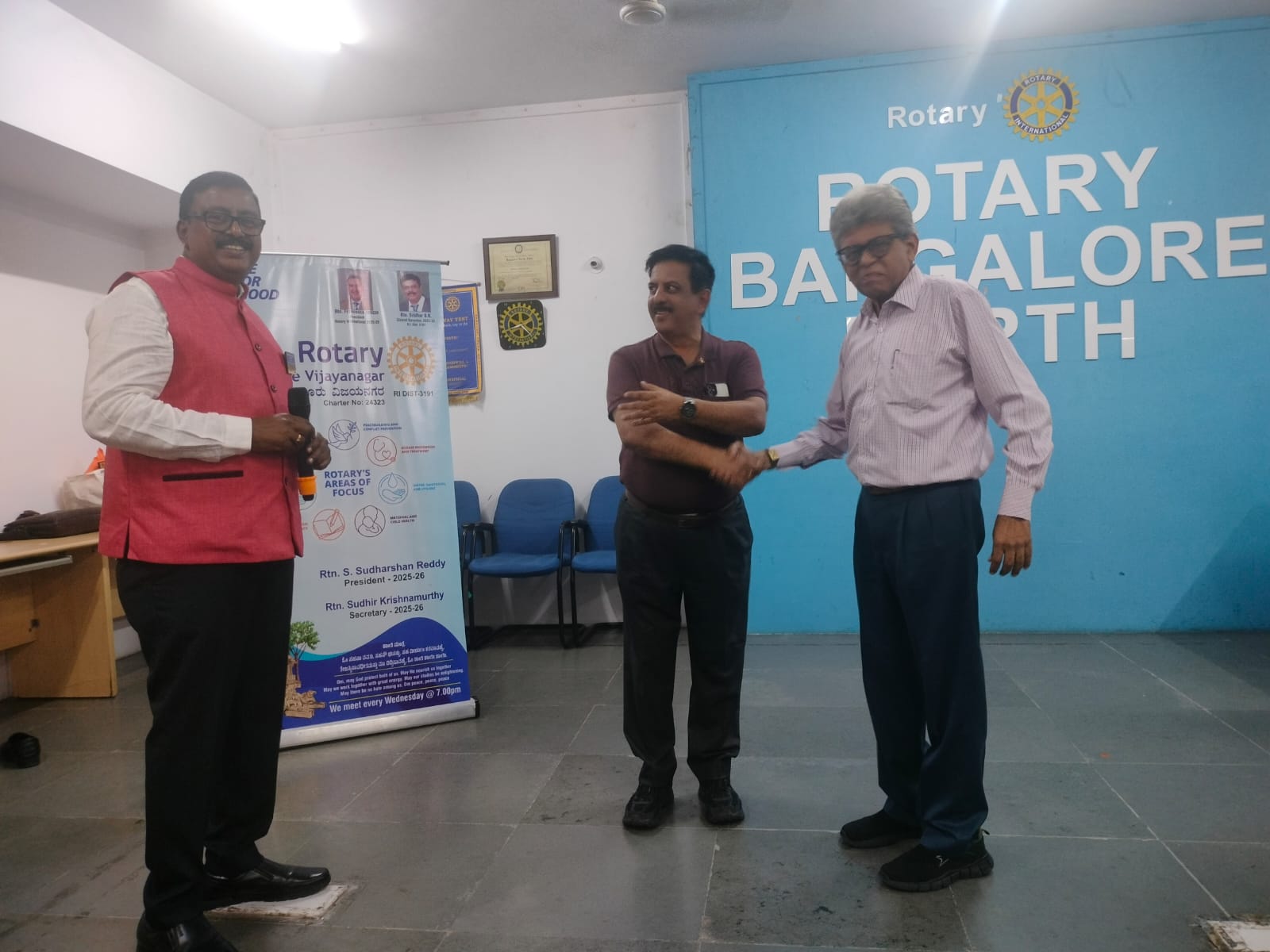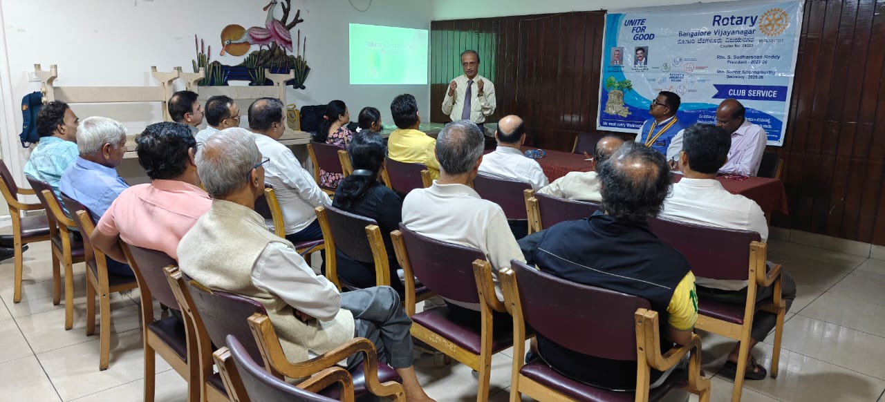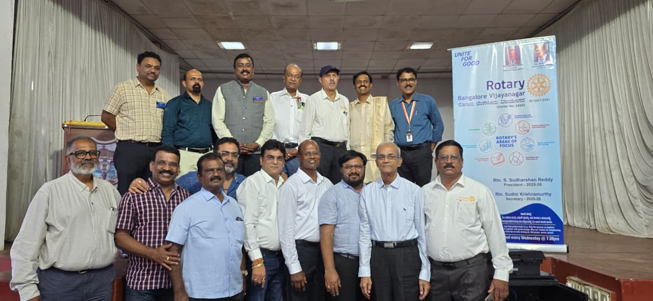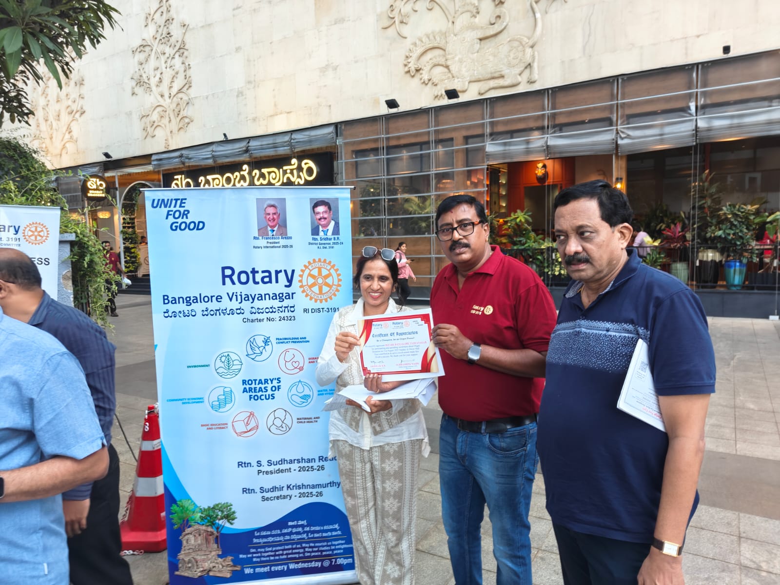 On 16th August, 2025, Rotary Bangalore Vijayanagar partnered with Rotary Bangalore Kanakapura Road on organising a wellness programme, where a portion of the proceeds would be donated to Visually Challenged Girls Music School. The programme started with a soulful Bharatanatyam dance performance, followed by various health sessions such as about talk on Brain Strokes by Dr. Sharath from Manipal hospital, sessions on Mental Health, Yoga, Pranic healing, followed by music performance by Visually Impaired, concluded with Sound therapy by Kumari and Kanuska. President Rtn. Sudarshan Reddy, President elect Rtn. Anil Kumar, YSD Rtn. Vishwakumar and Rtn. Rakesh attended the programme.