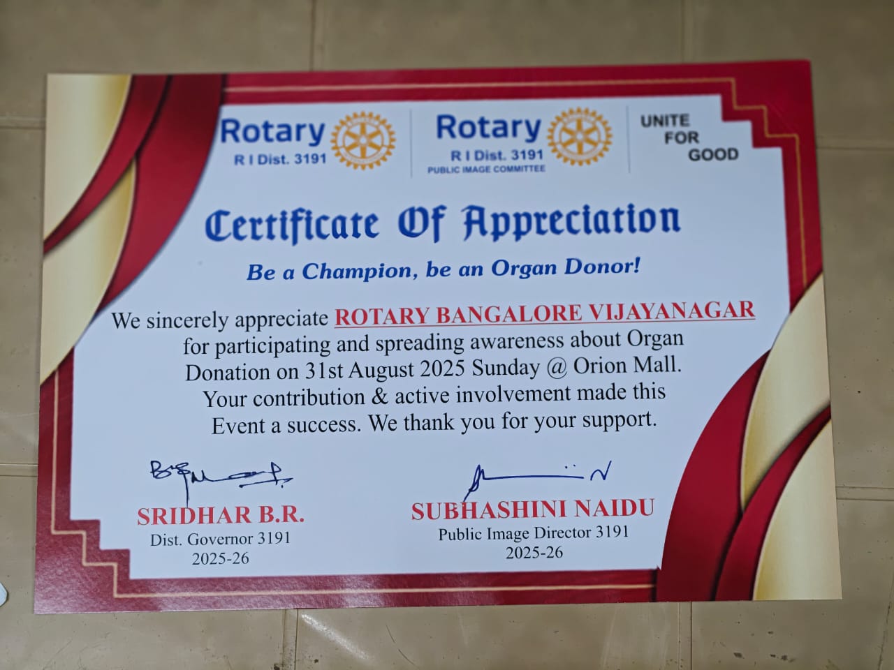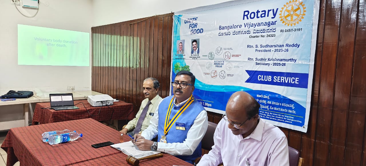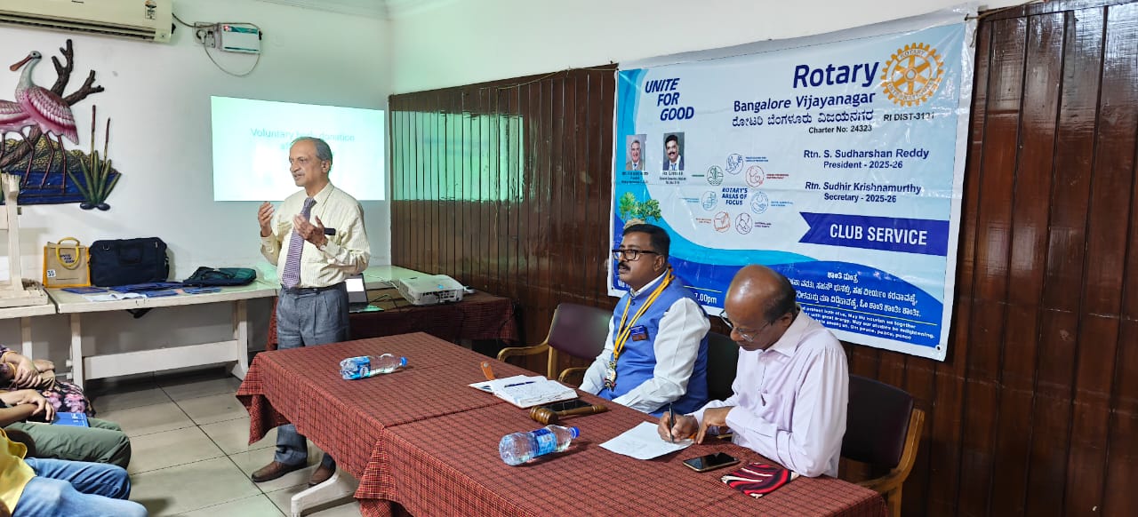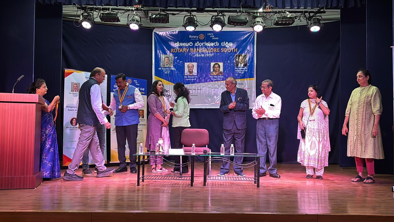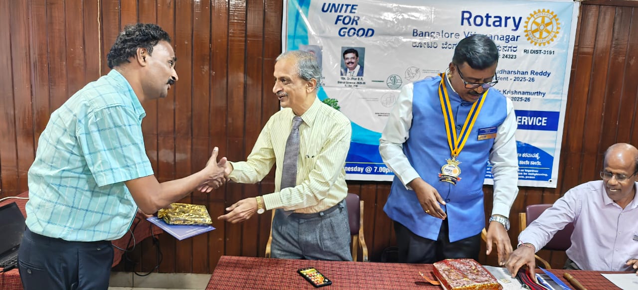 On 16th August, 2025, Rotary Bangalore Vijayanagar partnered with Rotary Bangalore Kanakapura Road on organising a wellness programme, where a portion of the proceeds would be donated to Visually Challenged Girls Music School. The programme started with a soulful Bharatanatyam dance performance, followed by various health sessions such as about talk on Brain Strokes by Dr. Sharath from Manipal hospital, sessions on Mental Health, Yoga, Pranic healing, followed by music performance by Visually Impaired, concluded with Sound therapy by Kumari and Kanuska. President Rtn. Sudarshan Reddy, President elect Rtn. Anil Kumar, YSD Rtn. Vishwakumar and Rtn. Rakesh attended the programme.