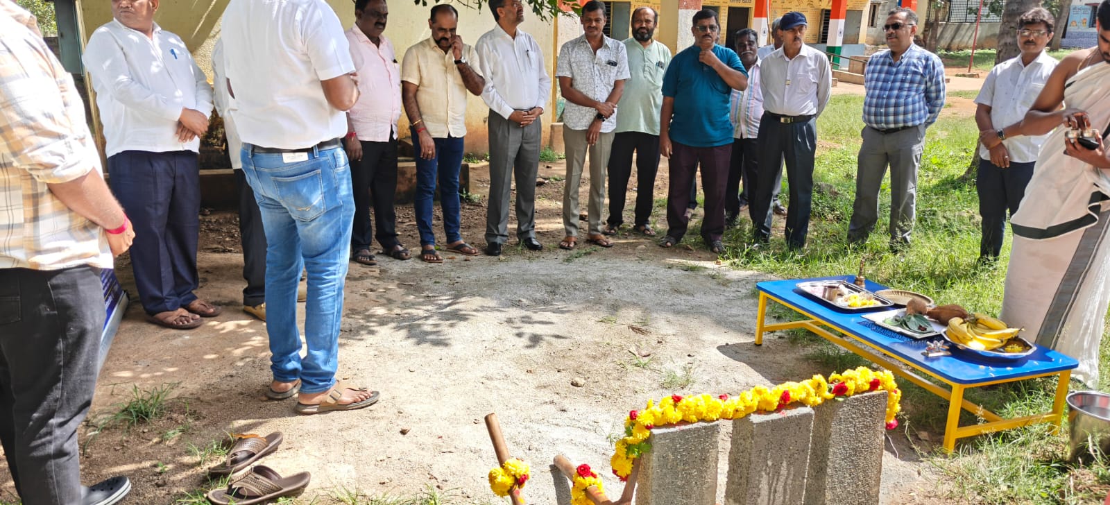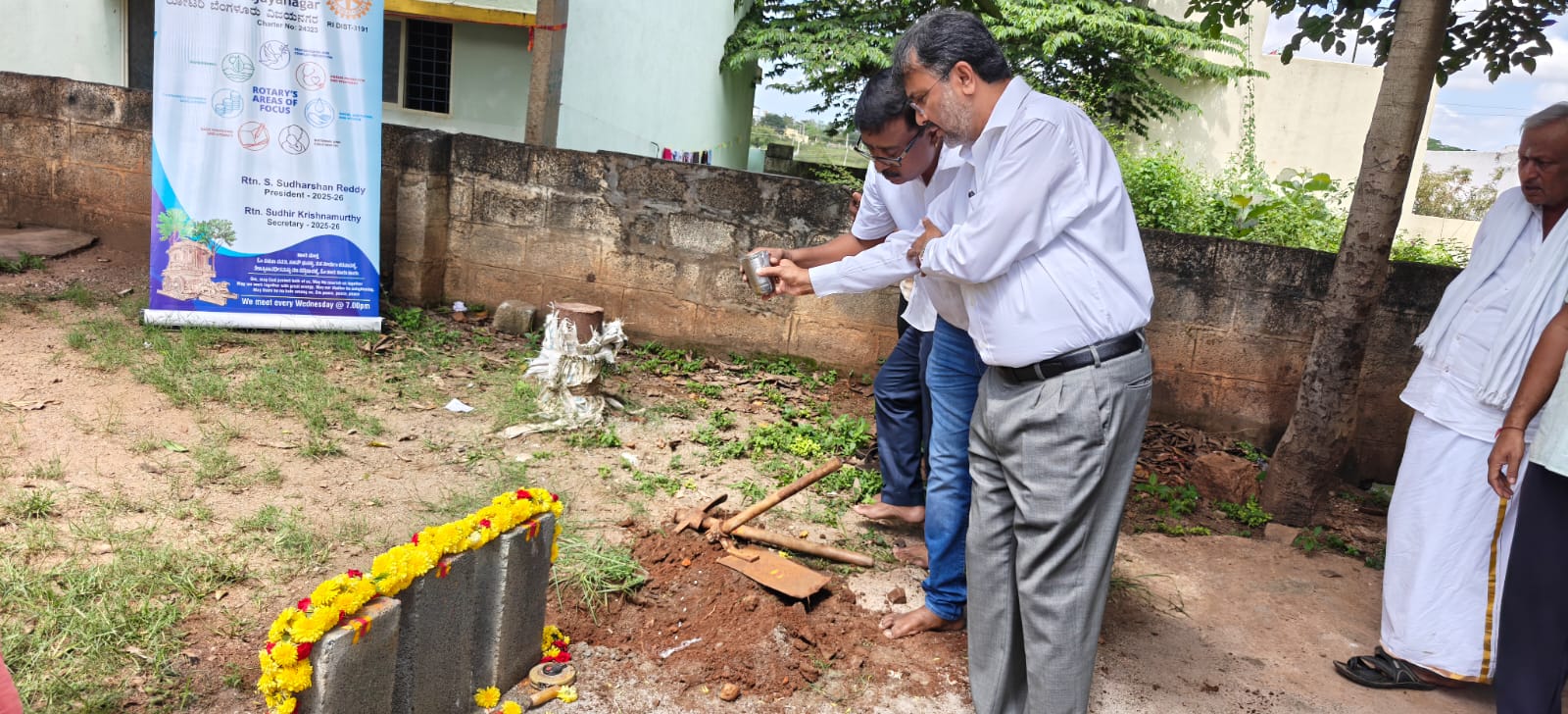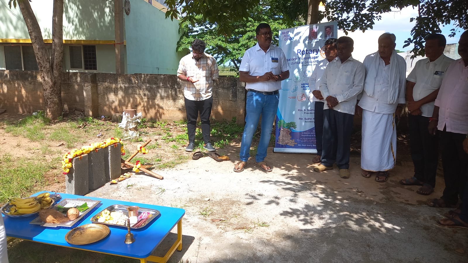 Ground Breaking ceremony ( Guddali Pooja) of CSR 5.0 for construction of classrooms under the ongoing Namma Hemmeya Shaale series was held on 25th October at Govt. Higher Primary School, Arakavathynagar, Seegehalki Gate, Magadi Road. PP Rtn P V Rai our CSR partner Pixel Softek Pvt. Ltd., did the honours along with President Rtn S Sudharshan Reddy in the presence of Principal of the school, Panchayat committee members and other elders and dignitaries from the locality. Under this project two classrooms will be built above the existing structure to accommodate seating for children as there's space constraint currently. Event was well attended by Rotarians from our club, who later visited another primary school nearby where compound is being built. Rotarians used the opportunity to visit factories of Rtn Rakesh and Rtn Sudharshan Reddy.