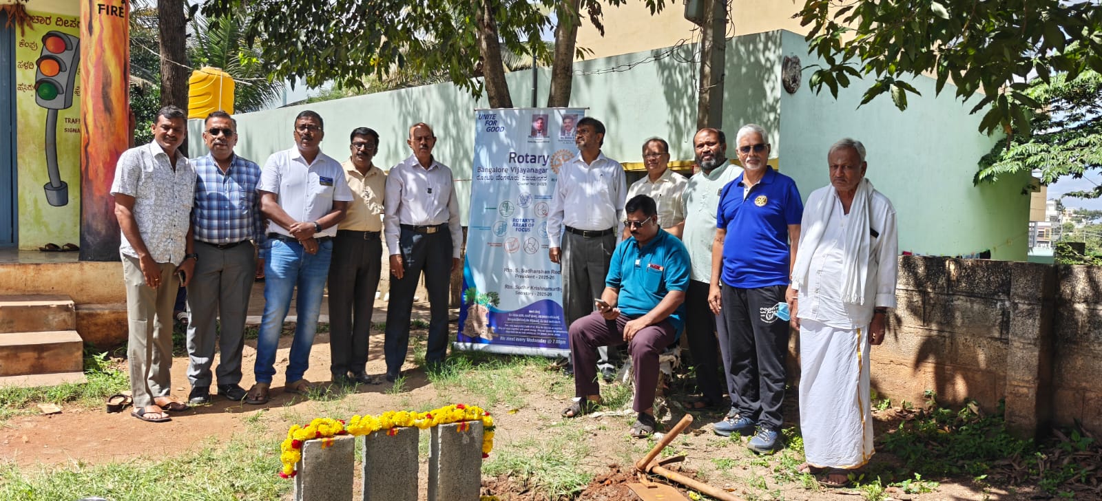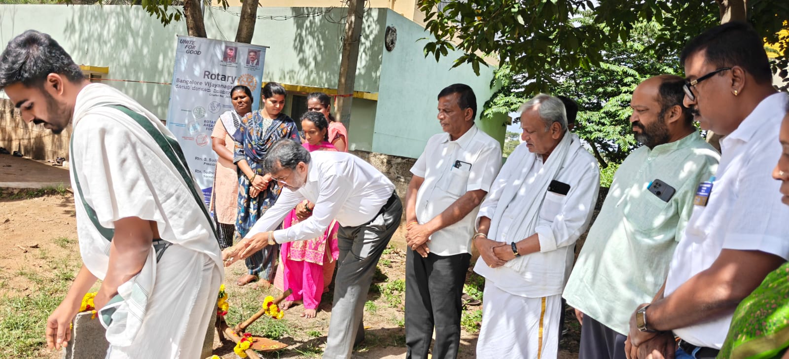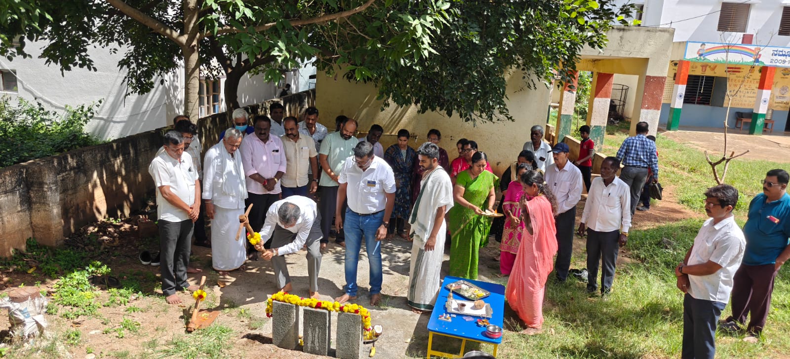 Ground Breaking ceremony ( Guddali Pooja) of CSR 5.0 for construction of classrooms under the ongoing Namma Hemmeya Shaale series was held on 25th October at Govt. Higher Primary School, Arakavathynagar, Seegehalki Gate, Magadi Road. PP Rtn P V Rai our CSR partner Pixel Softek Pvt. Ltd., did the honours along with President Rtn S Sudharshan Reddy in the presence of Principal of the school, Panchayat committee members and other elders and dignitaries from the locality. Under this project two classrooms will be built above the existing structure to accommodate seating for children as there's space constraint currently. Event was well attended by Rotarians from our club, who later visited another primary school nearby where compound is being built. Rotarians used the opportunity to visit factories of Rtn Rakesh and Rtn Sudharshan Reddy.