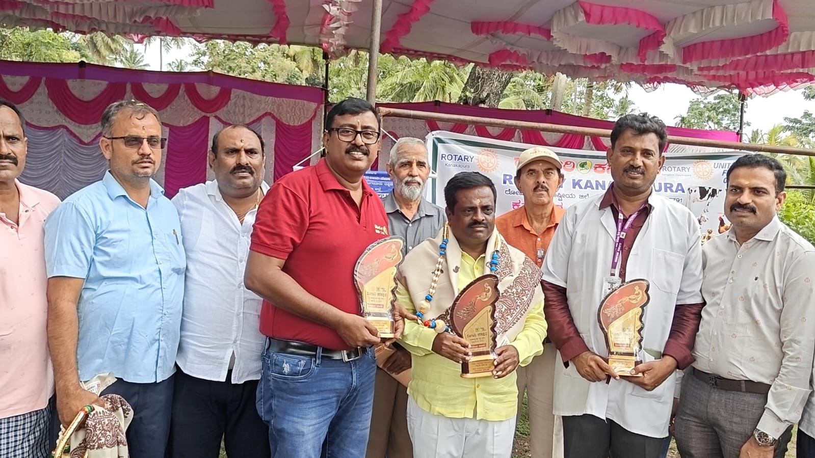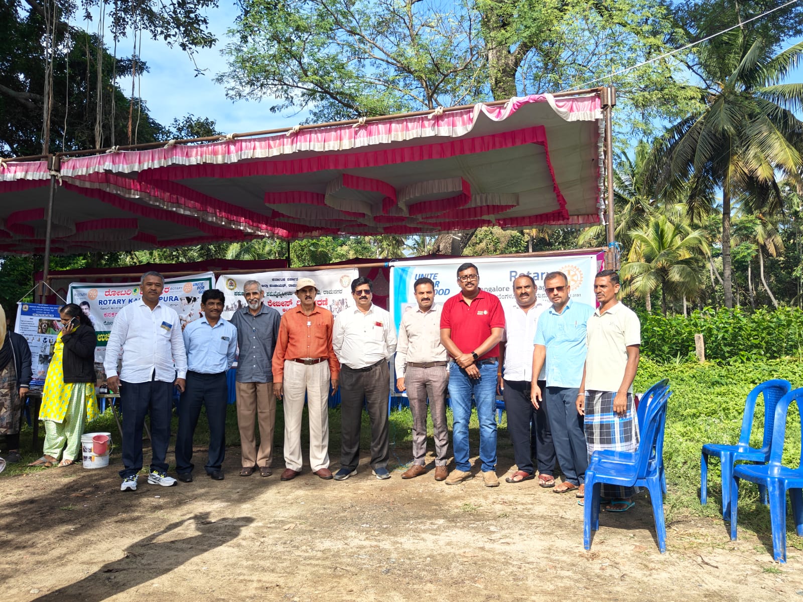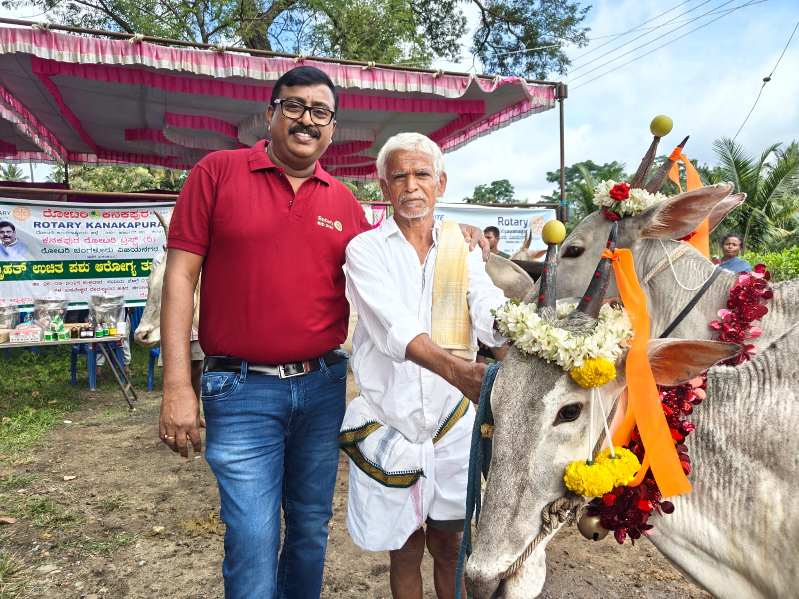 On 26th September, 2025, Rotary Bangalore Vijayanagar conducted Veterinary camp at Chiranakuppe, Kanakapura, jointly with Rotary Kanakapura. A well organized programme where 400 cattles including Cows, Bulls, Desi Cows, Sheep, Goats, Hens and pets like Dogs were treated with Hormones, Vaccination and medication. President Rtn. Sudarshan Reddy, CSD Rtn. Ashok Mahadevan, PP Rtn. Krishnamurthy, Rtn. Bhimsen and Rtn. Vishwakumar attended the project.