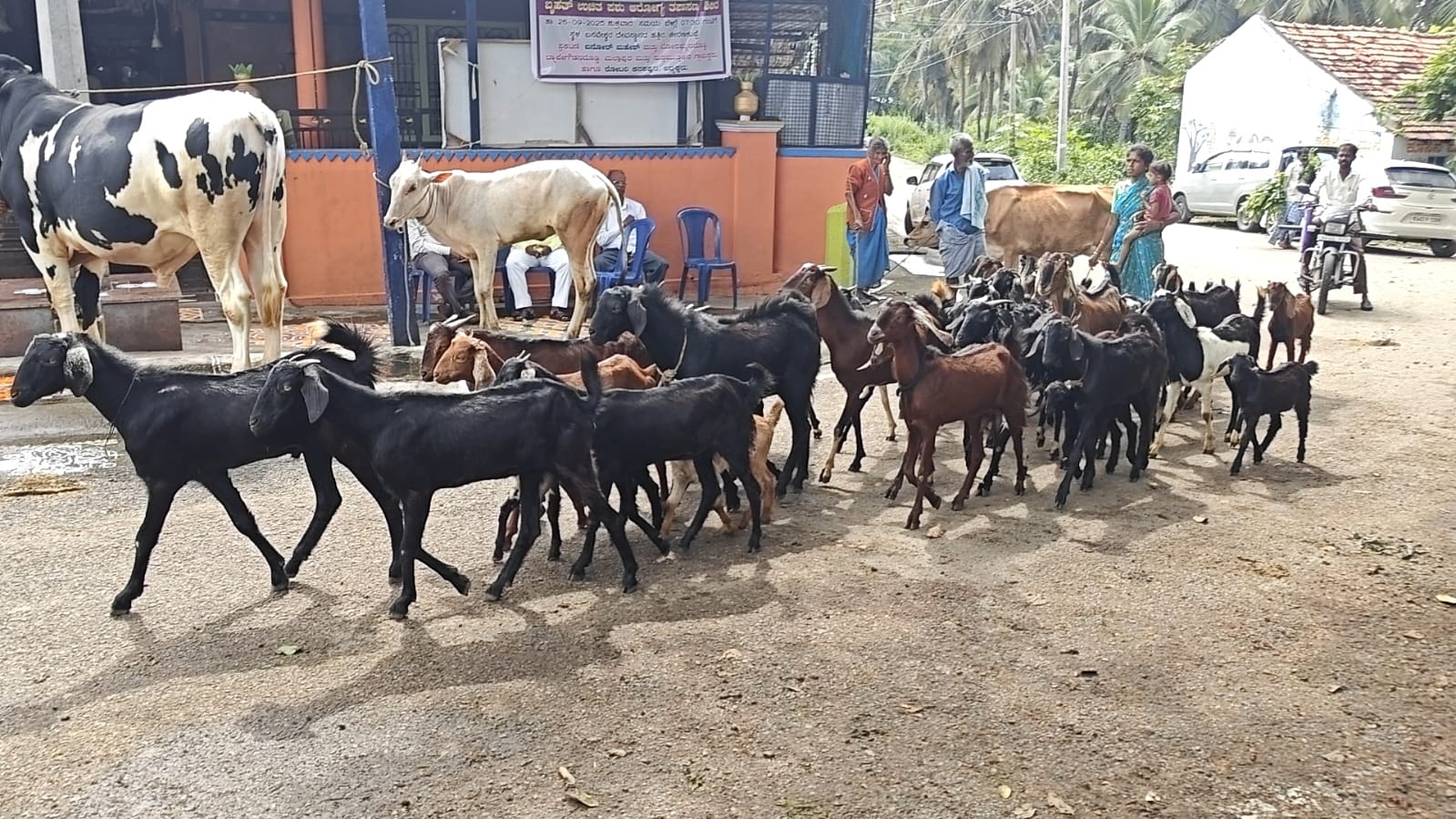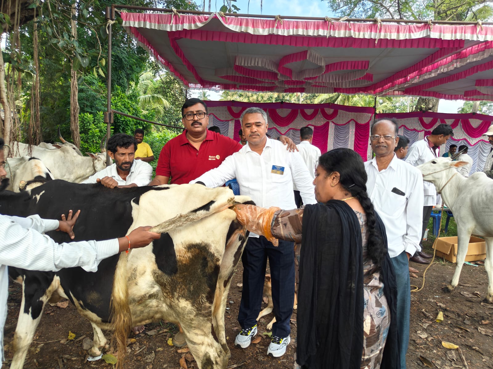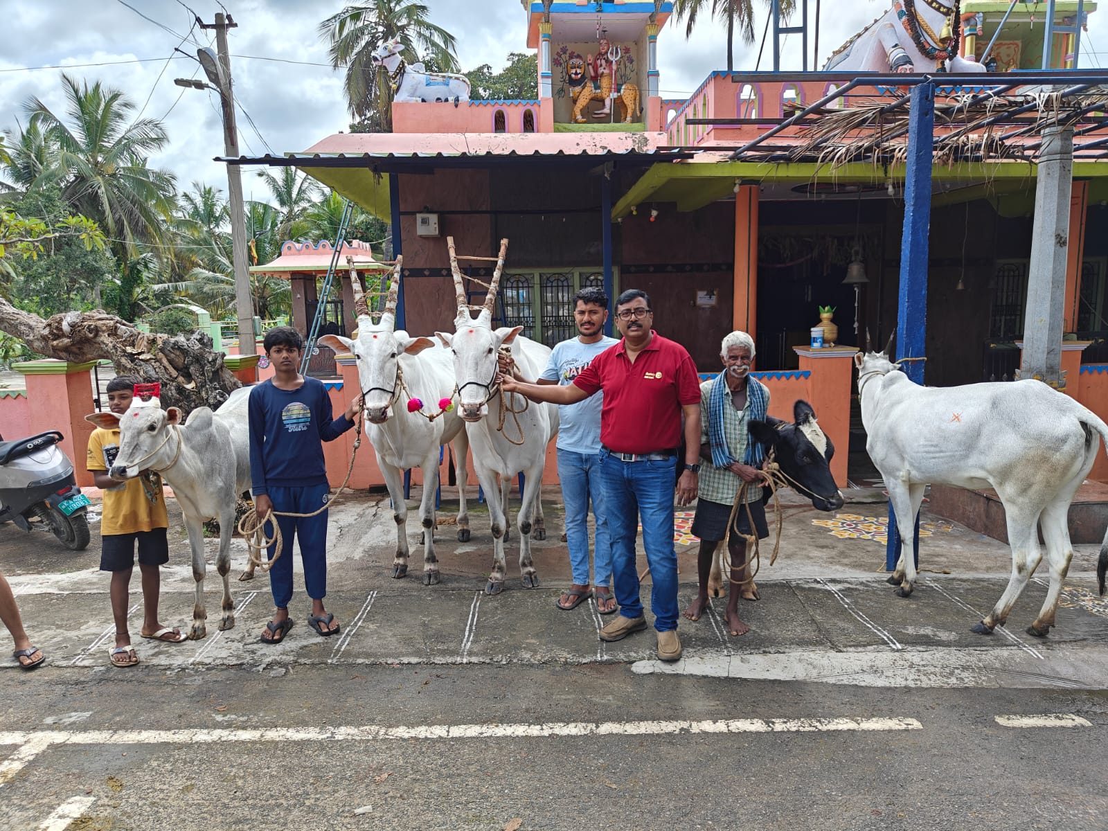 On 26th September, 2025, Rotary Bangalore Vijayanagar conducted Veterinary camp at Chiranakuppe, Kanakapura, jointly with Rotary Kanakapura. A well organized programme where 400 cattles including Cows, Bulls, Desi Cows, Sheep, Goats, Hens and pets like Dogs were treated with Hormones, Vaccination and medication. President Rtn. Sudarshan Reddy, CSD Rtn. Ashok Mahadevan, PP Rtn. Krishnamurthy, Rtn. Bhimsen and Rtn. Vishwakumar attended the project.