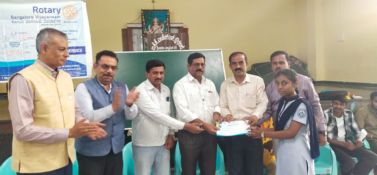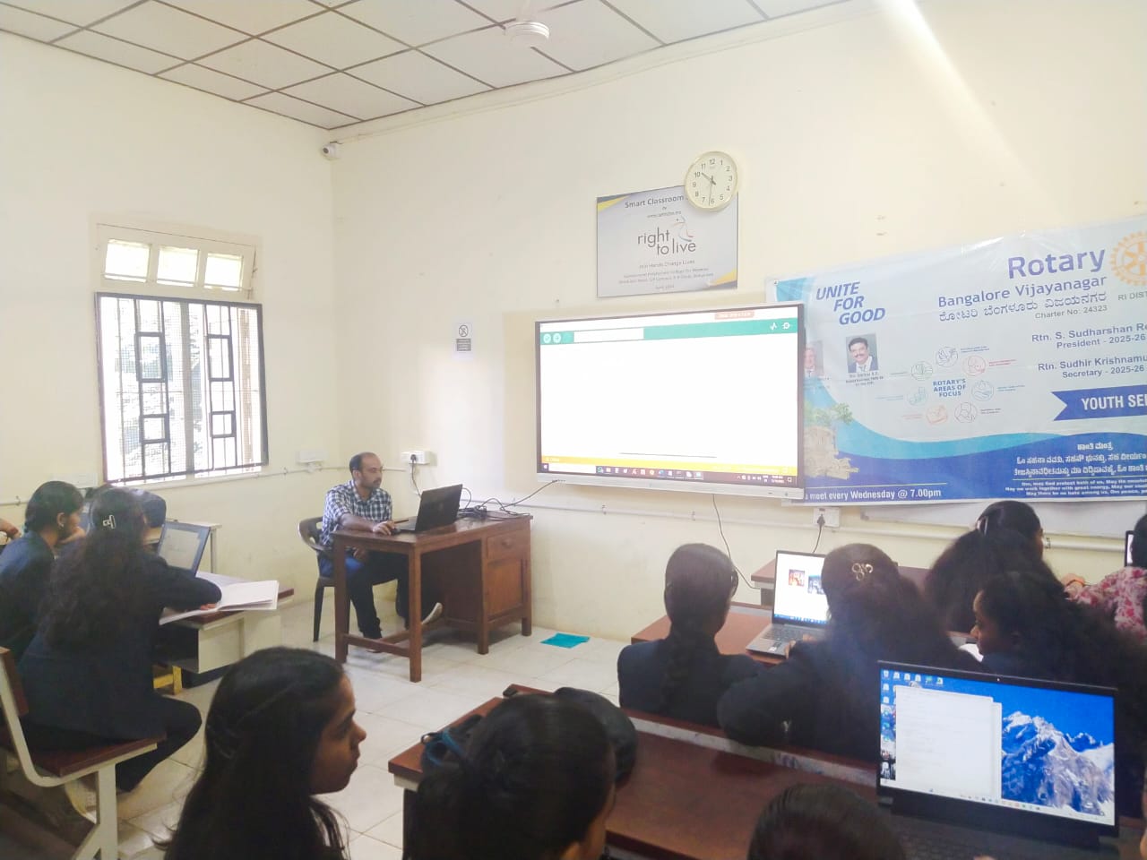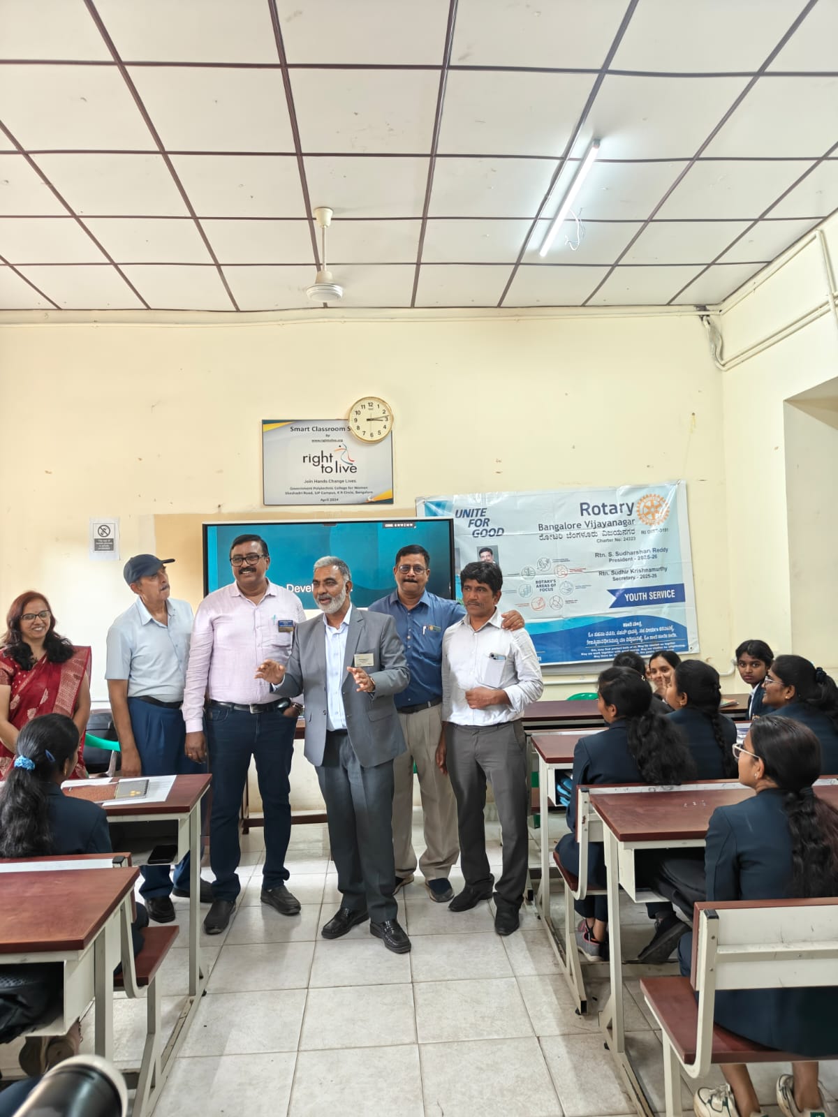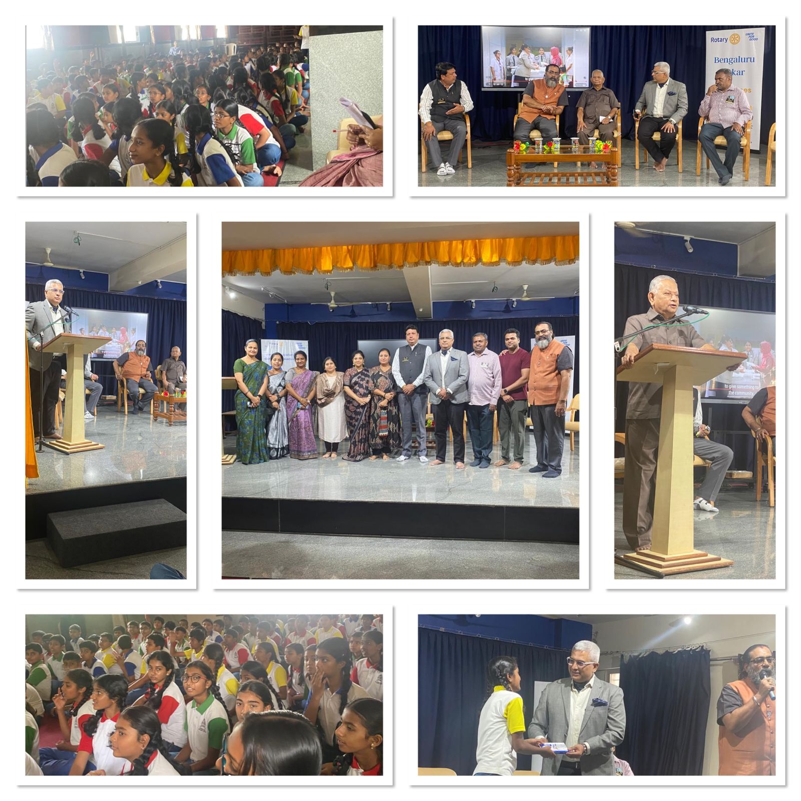 On September 9th, 2025, a Mental Health Awareness session was conducted for the students of Bangalore Blaze Girls High School, Nagarbhavi. This workshop is designed and conducted by Dr. Deekshitha from NIMHANS to create awareness among students about mental health, reduce stigma, and equip them with tools to manage stress and emotions. The workshop included expert sessions, interactive activities, and open discussions. 150 students comprising from 8th to 10th standard attended the workshop. 18 students from 10th standard had one-to-one sessions. This initiative is part of Rotary’s ongoing efforts to support youth health and education in the community.