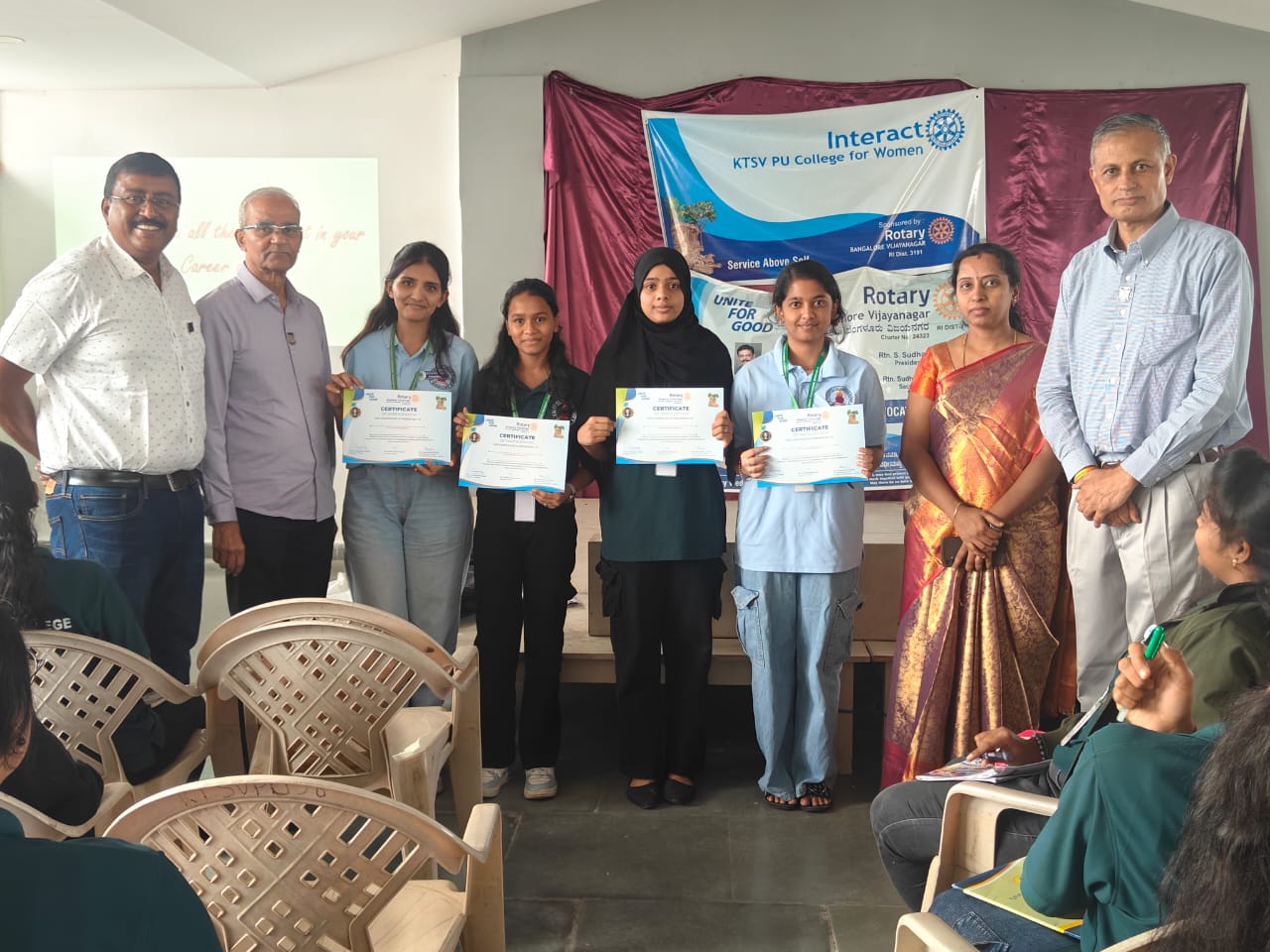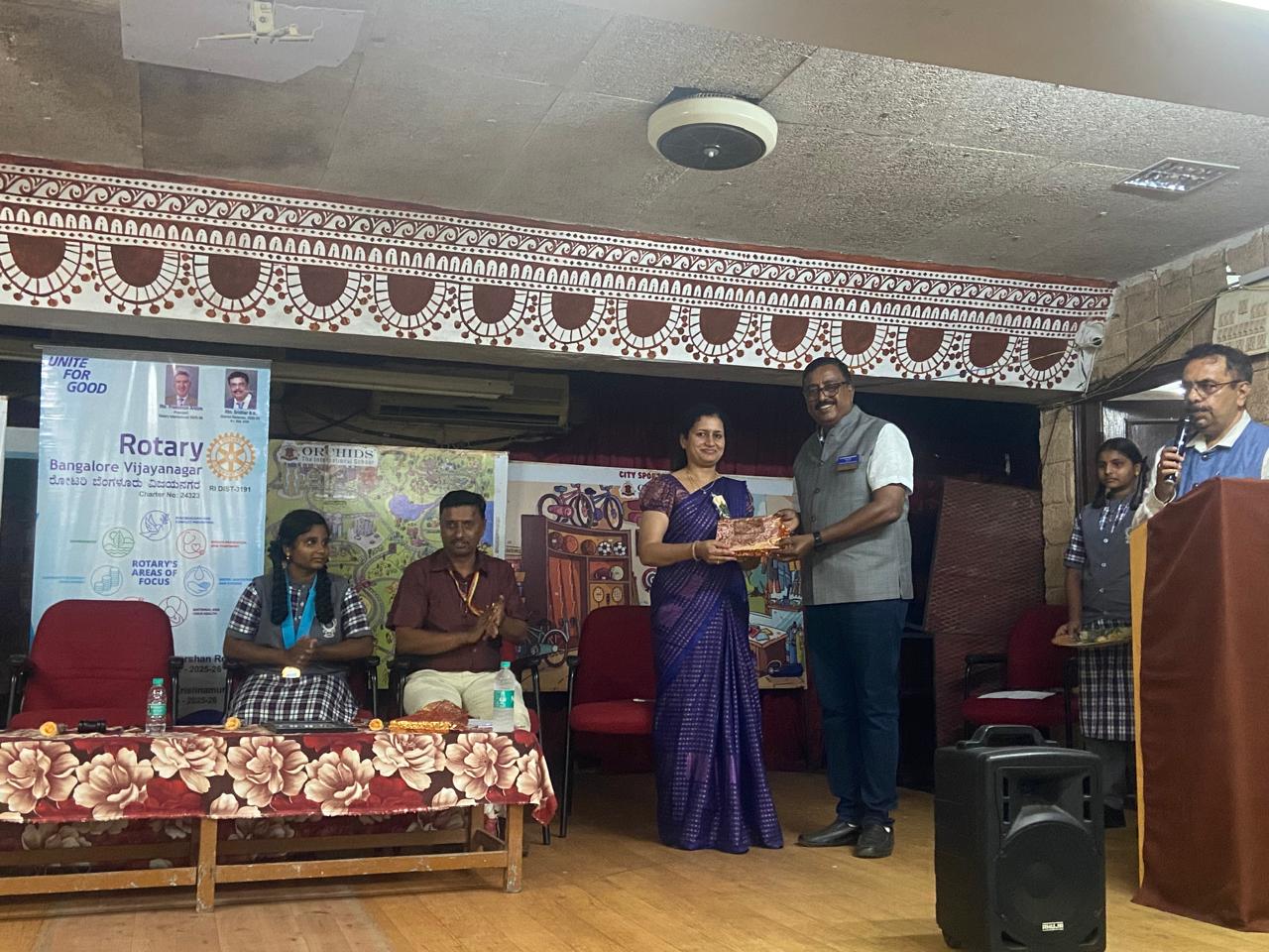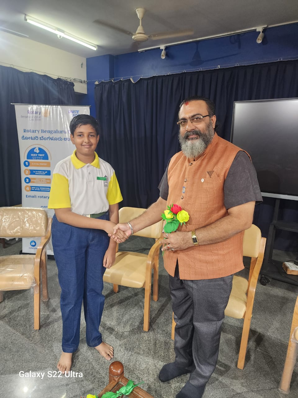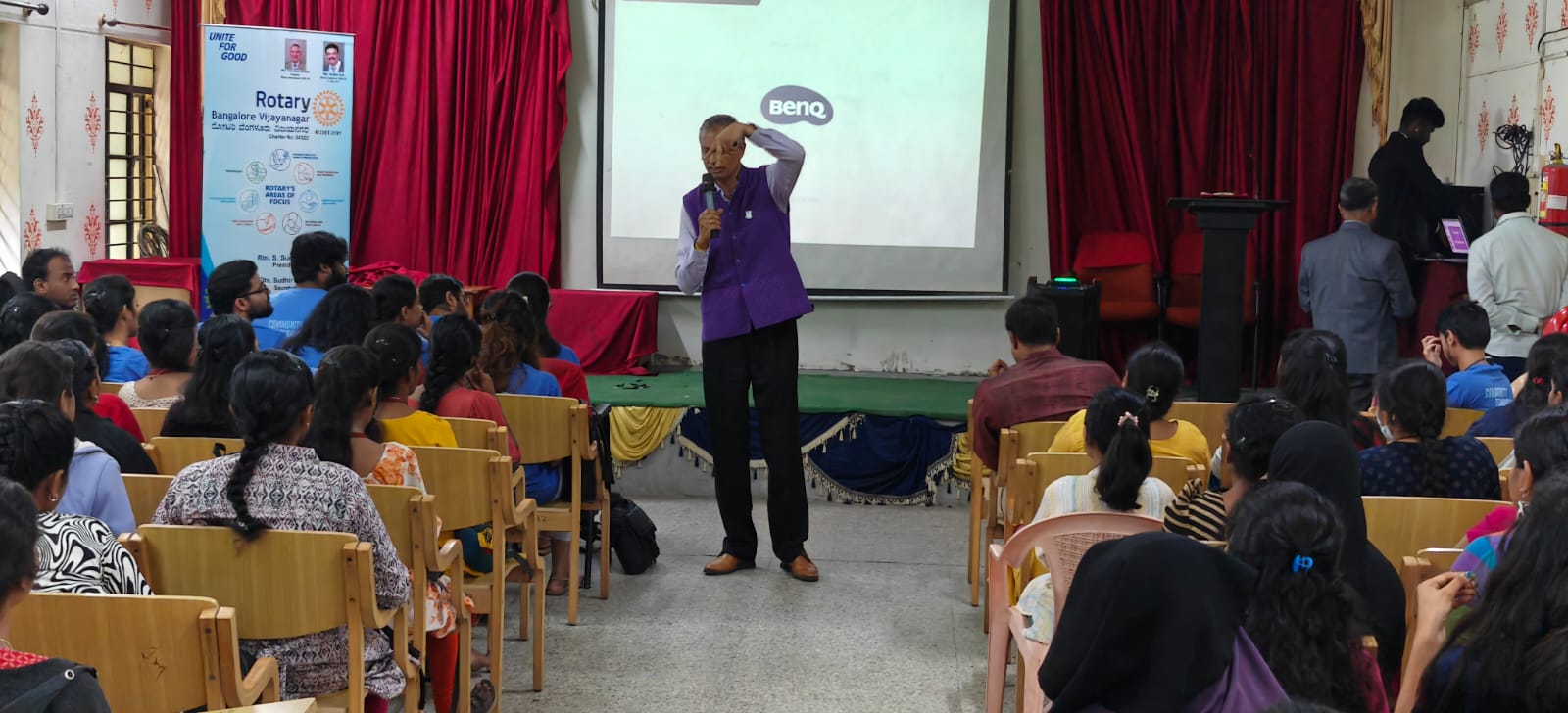 On September 9th, 2025, a Mental Health Awareness session was conducted for the students of Bangalore Blaze Girls High School, Nagarbhavi. This workshop is designed and conducted by Dr. Deekshitha from NIMHANS to create awareness among students about mental health, reduce stigma, and equip them with tools to manage stress and emotions. The workshop included expert sessions, interactive activities, and open discussions. 150 students comprising from 8th to 10th standard attended the workshop. 18 students from 10th standard had one-to-one sessions. This initiative is part of Rotary’s ongoing efforts to support youth health and education in the community.
