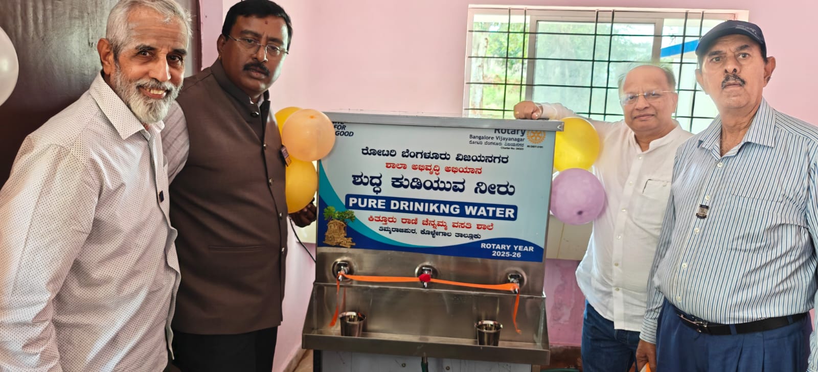 On 19th November, 2025, Rotary Bangalore Vijayanagar donated RO Water Filter to Moraji Desai Residential School and Kittururani Chennamma Residential School, near Thimmarajipura, Kollegal. 375 students from Moraji Desai Residential School and 360 students from Kittururani Chennamma Residential School got benefitted.