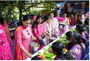 The CSR School building project held today was indeed memorable. The program was very well planned and executed by both the management and the students. All the students - from the band group, anchors, performers etc., were at their best. Their enthusiasm was clearly visible. At the end of it they extended their hospitality with sumptuous sattvic lunch made with home grown vegetables and wound up home made delicious dessert.