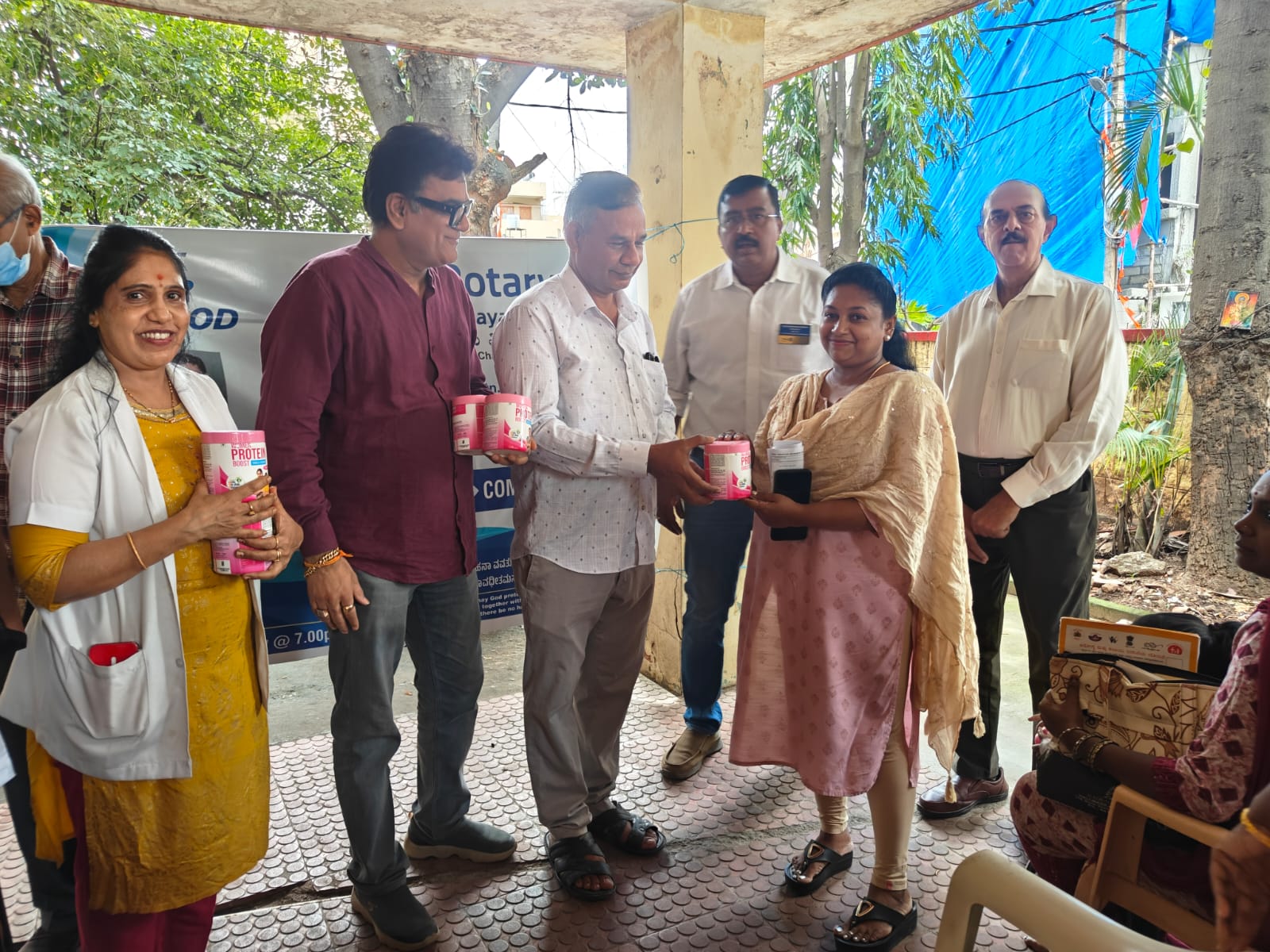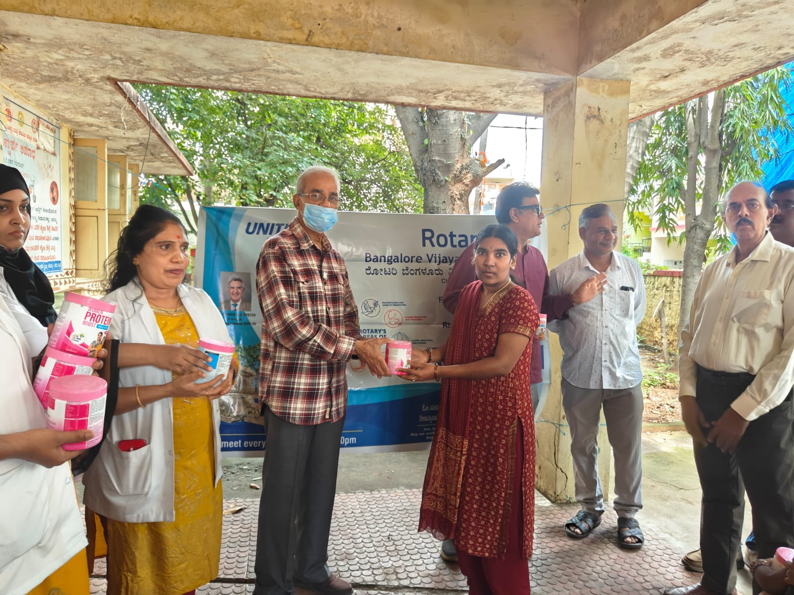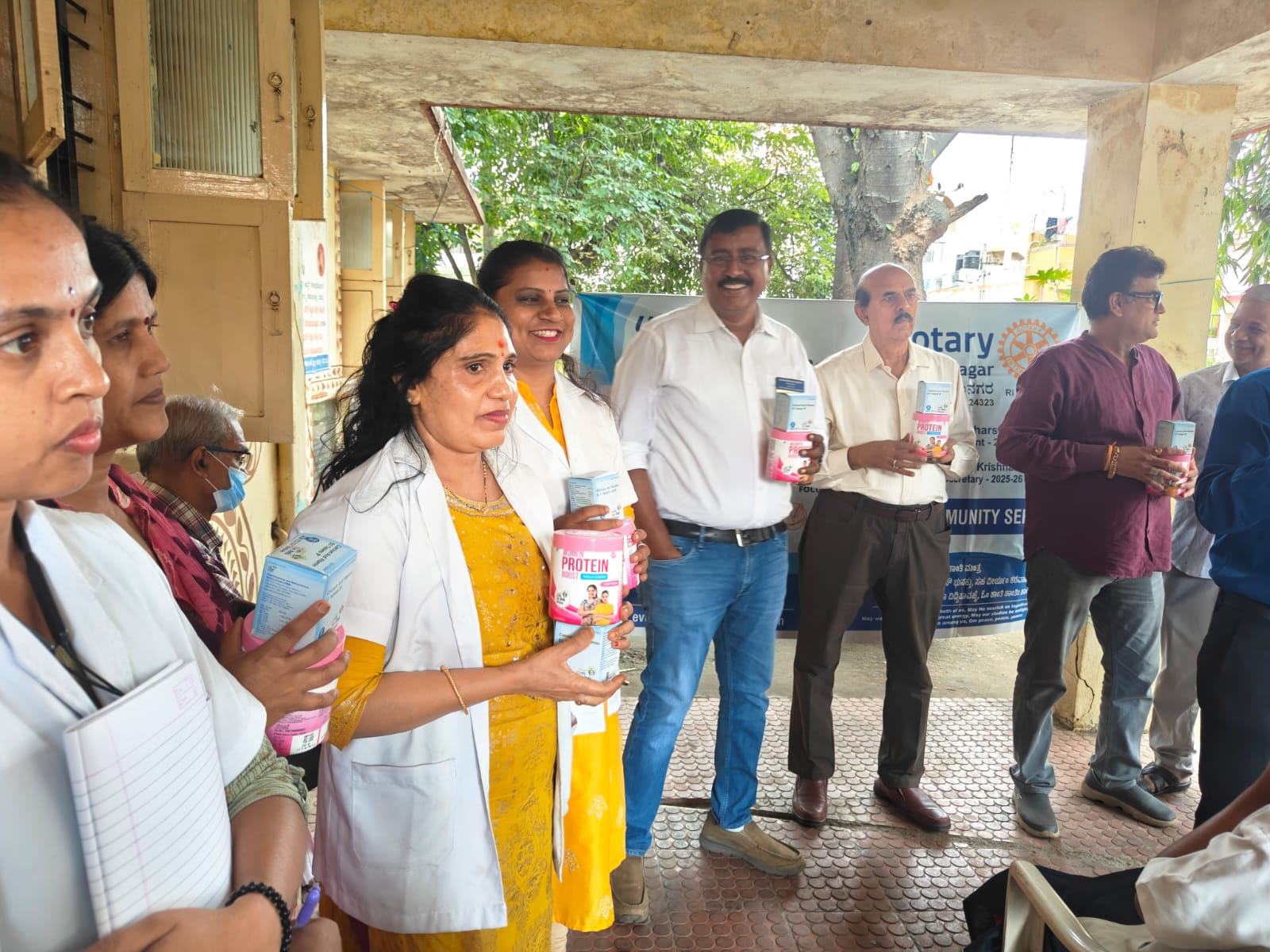 On 25th September, 2025, Rotary Bangalore Vijayanagar distributed Protein powder and Calcium D3 tablets to 20 pregnant women at Hosahalli PHC. This support will extend for another 4 months. This project is aimed to improve the nutritional status of undernourished mothers and children through nutritional aid and reducing malnutrition and its associated risks. The doctors guided the women on how to use the protein powder and advised them not to miss out on taking the tablets. This project is focused on maternal and child health, to promote early childhood development.