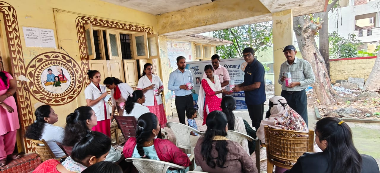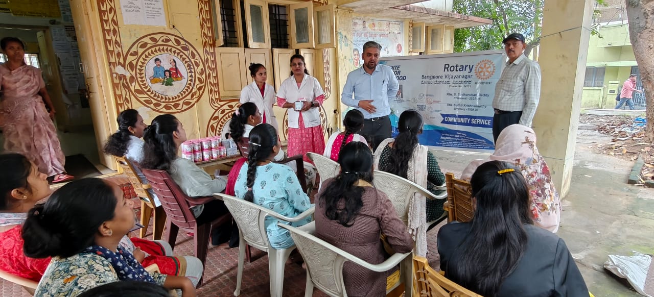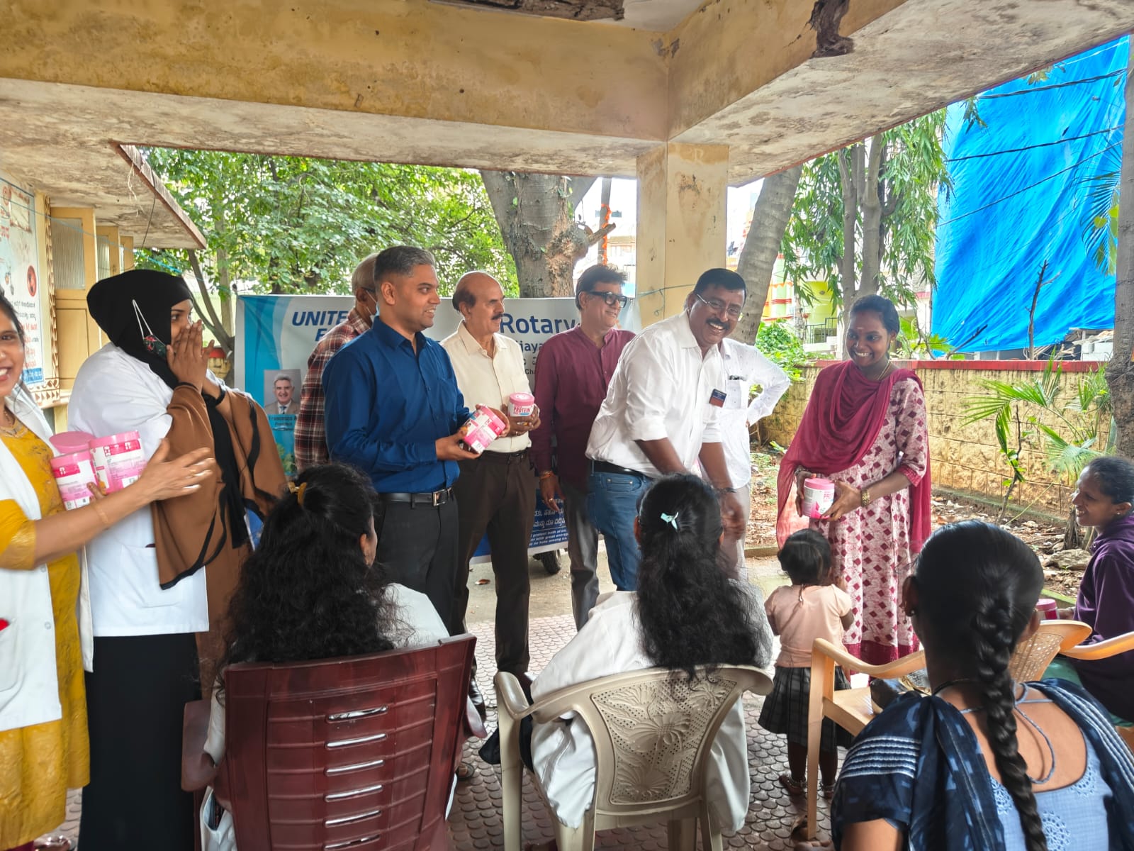 On 25th September, 2025, Rotary Bangalore Vijayanagar distributed Protein powder and Calcium D3 tablets to 20 pregnant women at Hosahalli PHC. This support will extend for another 4 months. This project is aimed to improve the nutritional status of undernourished mothers and children through nutritional aid and reducing malnutrition and its associated risks. The doctors guided the women on how to use the protein powder and advised them not to miss out on taking the tablets. This project is focused on maternal and child health, to promote early childhood development.
