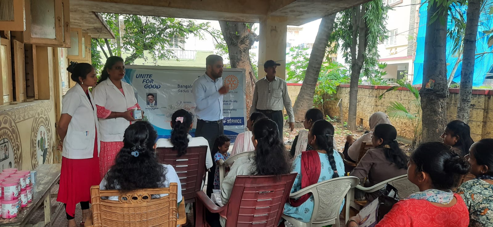 Rotary Bangalore Vijayanagar had a joint community service project with Rotaract Bangalore Vijayanagar at BBMP Maternity Hospital, Magadi road. This project is aimed to improve the nutritional status of undernourished mothers and children through nutritional aid and reducing malnutrition and its associated risks. This project is focused on maternal and child health, to promote early childhood development. 10 sets of Nutrition Kits/Aids were distributed to the Mothers who had delivered recently.
