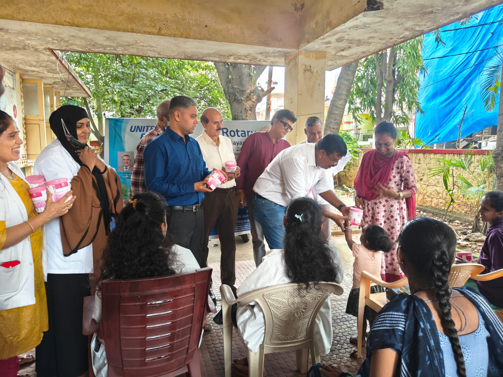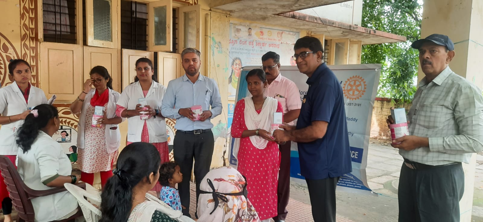 On 24th September, 2025, Rotary Bangalore Vijayanagar distributed Protein powder and Calcium D3 tablets to 20 pregnant women at Hosahalli PHC. This support will extend for another 4 months. This project is aimed to improve the nutritional status of undernourished mothers and children through nutritional aid and reducing malnutrition and its associated risks. The doctors guided the women on how to use the protein powder and advised them not to miss out on taking the tablets. This project is focused on maternal and child health, to promote early childhood development.