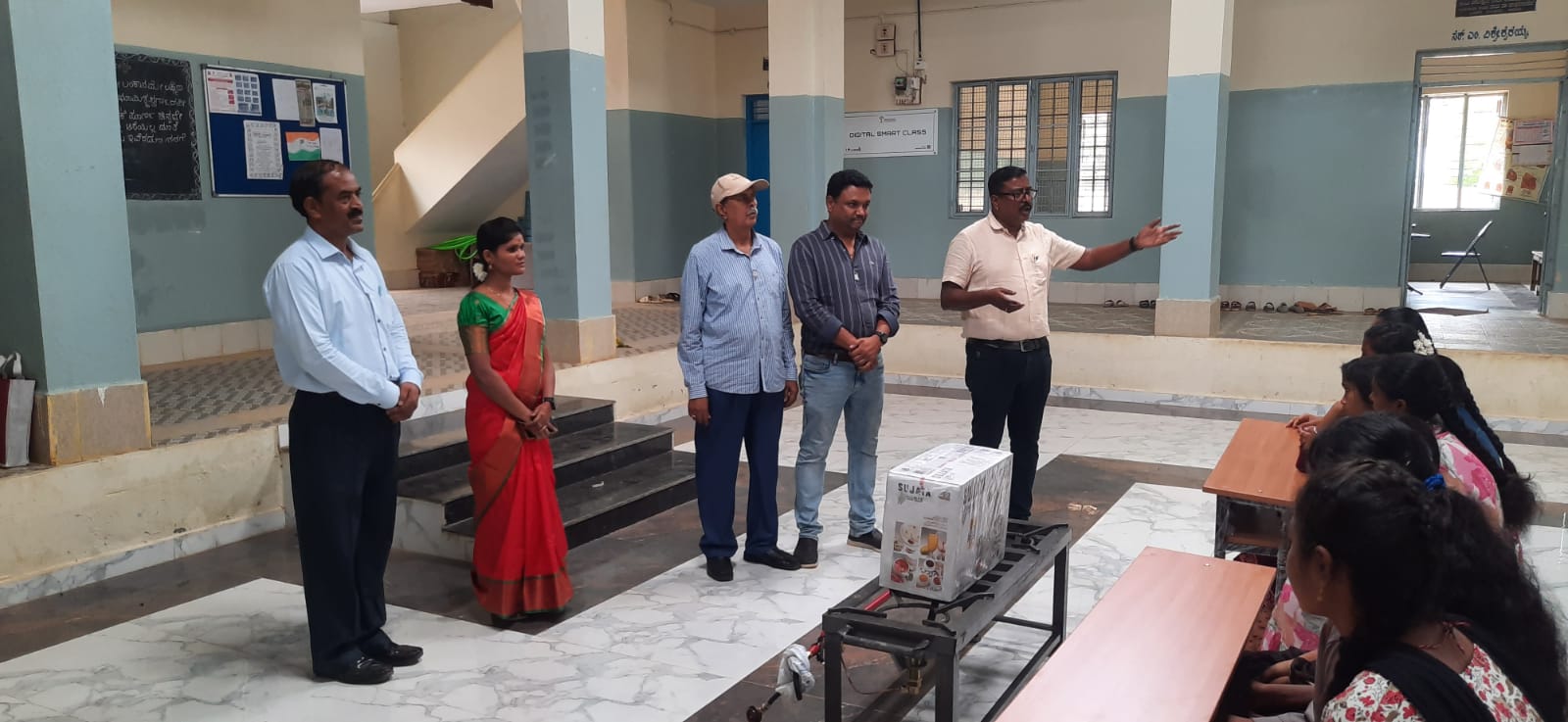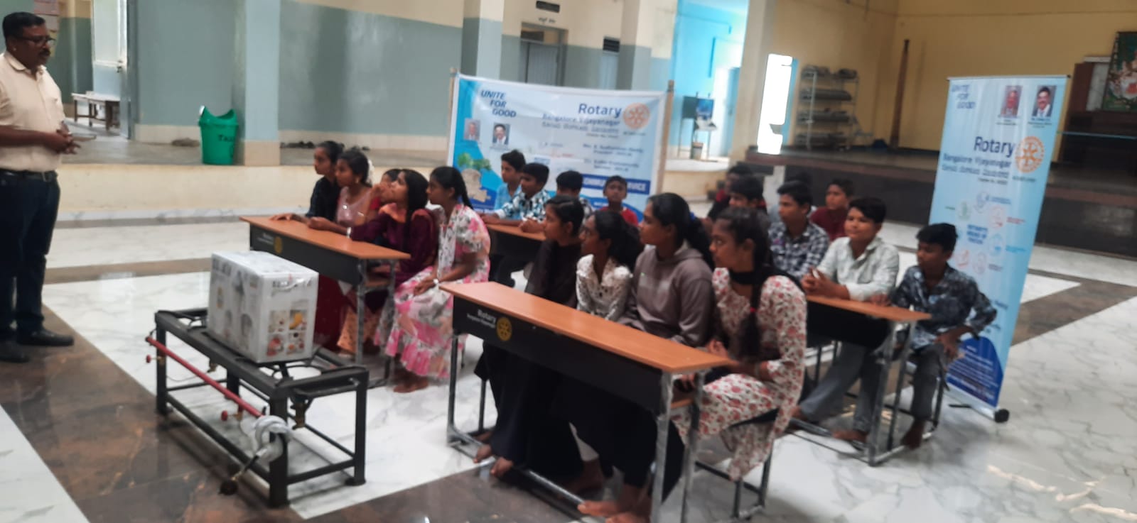 on 10th March on behalf of RBV a Sanitary Napkin Wending Machine along with one Sanitary Napkin Burning machine was donated to Government High School at Marenahalli. Thanks to contribution from Rtn. Rakesh & family Rs.15,000, Rtn. U shivakumar Rs.5,000 and Innerwheel Vijayanagar Rs.5,000 the project was executed. After the inauguration of the machine a talk by Innerwheel on Health and Hygiene to the girl children present was also arranged. The event was attended by Members along with Anns