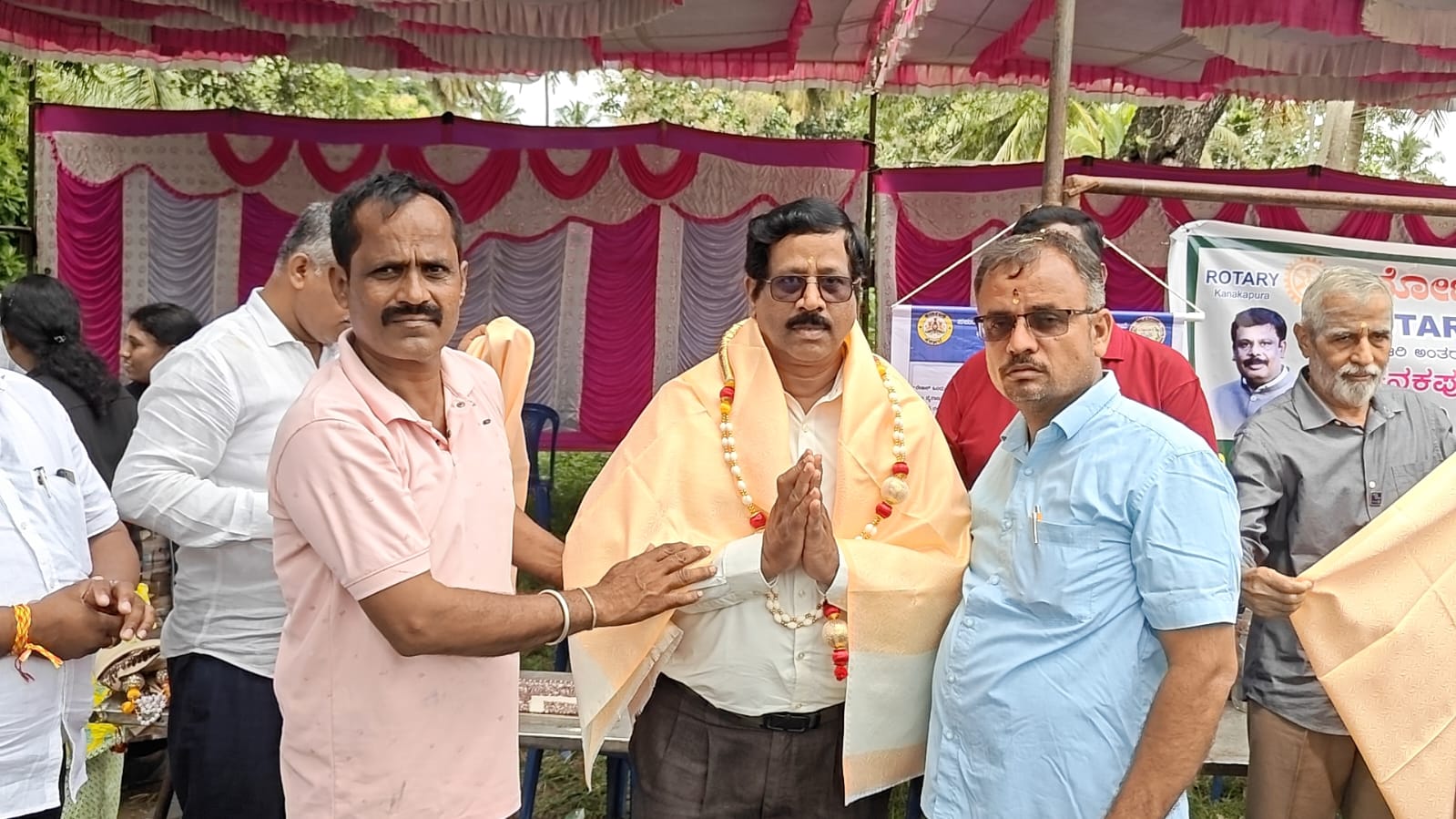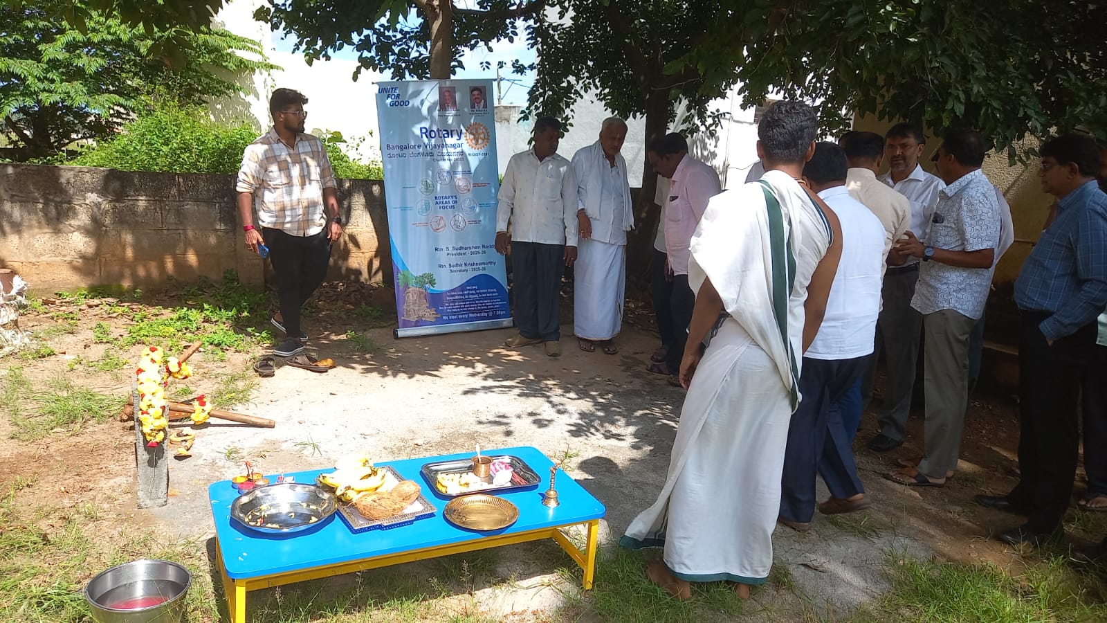 School Development CSR project Titled " Namma Hemmeya Shaale" - at Sathnur Government High school, Mandya District got off to a good start with a guddali pooja on 13th April 2022. Then a visit to all other site locations Kallahalli, Channappana doddi and Hosa Budanur was also undertaken. Slated to be one of the biggest CSR projects ever undertaken by RBV is focused on school development especially in the rural areas as mandated by the CSR partner Pixel Softech of PP Rtn.P.V.Rai. It is expected to be spread over a few years where needy schools will be provided with a necessary infrastructure boost along with other teaching equipment.